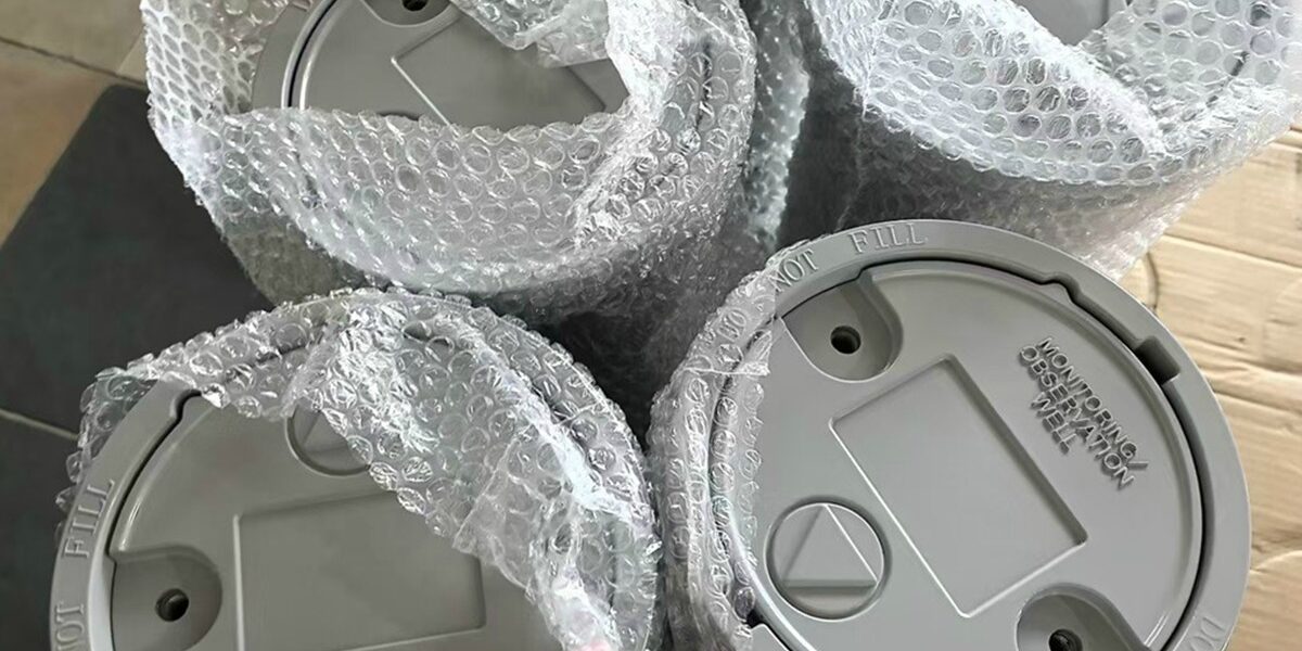 Final installation materials including casing (steel or PVC), well screens, well caps, pipe fittings, protective casings.